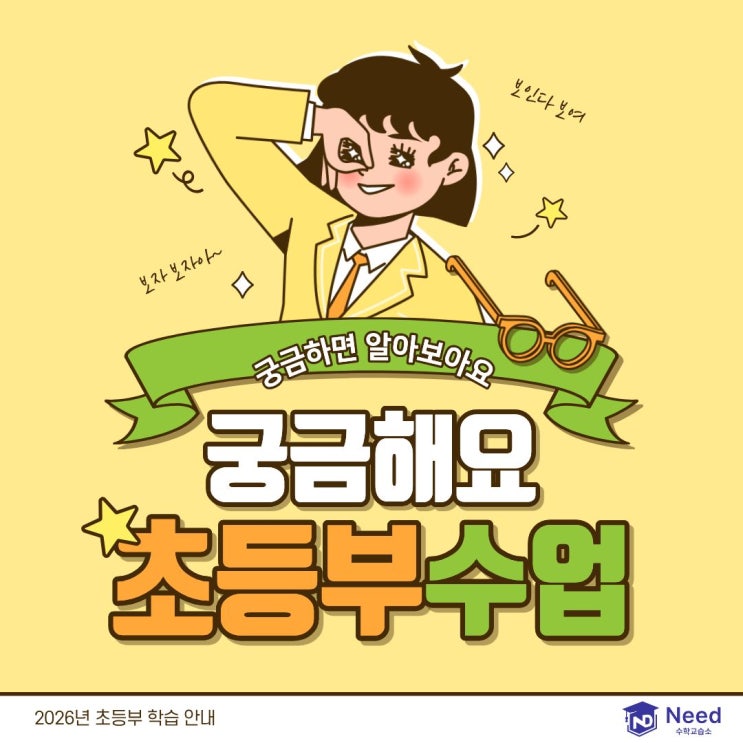 초등부 수업에 대해서 소개 드리겠습니다. 크게 -점프업 클래스, 탄탄관리 클래스 2 가지의 커리큘럼이 있습니다. 각각에 대해서 아래에 소개드리겠습니다. ✏️점프업 클래스 -빠른 선행학습이 필요한 학생 - 하지만 복습 또한 챙기고 싶다. - 본교재 1권(디딤돌 기본+ 응용)+ 복습부교재 1권(쎈) - 1.5개월 마다 한 과정 진행 ✏️탄탄관리 클래스 - 탄탄하게 다지면서 진도를 나가고자 하는 학생 - 본교재 2권(디딤돌 기본+응용 & 쎈)+ 복습 부교재2권(최상위. 최상위s) - 본교재 복습 부교재 각 한권씩, 1.5개월 총 2번에 한 과정 마무리 ✏️바인더(공통) - 니드수학교습소에서 하는 학습 내용, 일일테스트, 오답정리, 오답....... <img src="https://blogthumb.pstatic.net/MjAyNjAyMjVfMTIg/MDAxNzcxOTUwNTU0Njgx.t9NRGK28JfFYTqSG4_MpqU45By9nN7EggXpfC11Gz24g.xxgeEFztZaq3uI1PlxML1qD7MKGvRmm8TUnpdXzAGz4g.JPEG/1.jpg?type=s3" />