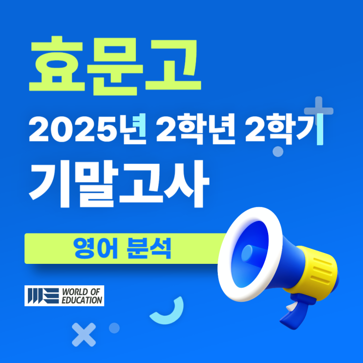 안녕하세요 :) 수능 원서 쓸 때까지 함께하는 입시 컨설팅 국어, 영어, 수학, 과학 입시전문 쌍문동 영어학원 월드에듀입니다. 고등학교 영어 내신은 단순히 지문을 많이 풀었다고 해서 점수가 오르지 않습니다. 특히 같은 학교, 같은 학년 시험은 출제 범위보다도 선생님의 출제 스타일과 반복되는 유형을 얼마나 정확하게 읽어냈는지가 성적을 가르는 핵심 요소가 됩니다. 오늘은 효문고 2025년 2학년 2학기 기말고사 영어 시험을 기준으로 시험의 특징, 상위권을 가른 핵심 포인트, 그리고 예비고2·예비고3 학생들이 어떻게 대비해야 하는지에 대해 구체적으로 정리해보겠습니다. 철저하게 분석해야 하는 학생 예비고3 학생 : 2학....... <img src="https://blogthumb.pstatic.net/MjAyNjAxMjlfMjQ0/MDAxNzY5NjUyNTYwMDEx.wRwGZuhlhfMO-R05dULkU1I82AZRlc51Ru5bLO3r3d0g.-mjoWuC2PipOBbr_GWey5uZ6FU20v3f35UbYPEEc3CMg.PNG/%BD%D6%B9%AE%B5%BF_%BF%B5%BE%EE%C7%D0%BF%F8_%281%29.png?type=s3" />