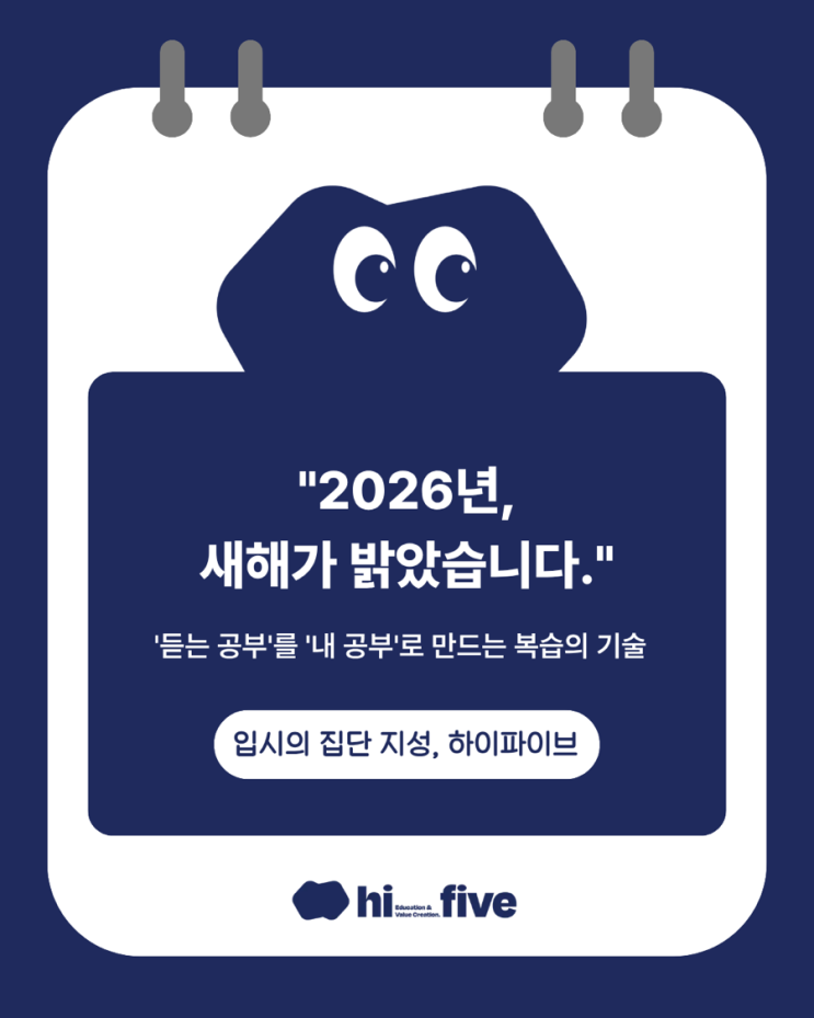 안녕하세요! 듣는 공부가 아닌 내 공부를 만드는 복습의 기술을 전달하는 입시의 집단 지성 하이파이브 대표 허강훈 원장 입니다. 어느덧 2026년도 새해가 밝았습니다. 지난 2025학년도를 보내느냐 고생 많았던 우리 학생 여러분과 학부모님들! 2026학년도는 공부의 결실을 잘 맺어 학업의 형통만이 가득하기를 바랍니다. 2026학년도 입시 및 공부법 어떻게 시작해야할까요? 제일 중요한 것은 구경하는 공부를 그만해야 합니다. ❌ 이제는 오직 내 공부를 만들어야 합니다. ️ 우리 학부모님들과 학생들이 제일 크게 착각하는 부분 중에 하나가 바로 수업을 들으면 공부를 했다라고 착각하는 것입니다. 선생님의 풀이를 보며 고객을 끄덕이는....... <img src="https://blogthumb.pstatic.net/MjAyNjAxMDhfMTIz/MDAxNzY3ODQ3MDMwNDQ0.9fW8NgjCI5xfitNyaBci4C1LLlJSHpT2Xd_S6yoNSjcg.RAxfXLaBjJz8kWs8Yf2PpT8yrjdXvOb8EXwYW0hKNPEg.PNG/IMG%A3%DF0669.PNG?type=s3" />