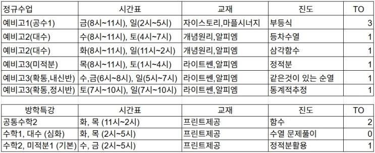 토일 : 오후 5시~7시 수업 교재 : 자이스토리와 시크릿교재 개강 : 3월부터 (현재 기존반에서 진행중이며 3월에 주말반으로 재편됩니다,) 강사 : 국제고, 외고 전문 강사 이석찬T 수강료 : 42만원 정원 : 8명 문의 : 032-567-0607