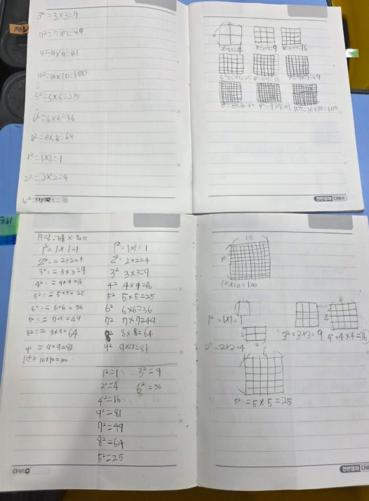 다비수 수학에서만 알려주는 19단 그러기 전에 제곱수를 익혀요 2×2. 3×2. 4×2. 5×2. 6×2. 7×2. 8×2. 9×2 10×2를 쓰면서 처음 제곱수를 알아가며 배웁니다 다비수 활용으로 구구단만 할수있으면 제곱수를 알아가며 19단으로 그리고 써가며 익혔어요 개념을 알아야 해요 10×10부터 작성후 11×11부터 기본틀에 날개와 꼬리가 붙어요 겨울방학 특강으로 2주정도는 쓰면서 기본 제곱수부터 쓰고 읽혔어요 예비 3학년 이제 곱셈을 배우면서 제곱수를 쓰고 19던을 드리며 반복했어요 4주 5주차가 되어가면서 머릿속에 상이 잡히며 익혀가고 이젠 속도도 제곱수도 알아가고 있어요 차츰차츰 탑이 쌓이듯 높이 올라가며 알아가는게 대견스럽고 자존감과 자....... <img src="https://blogthumb.pstatic.net/MjAyNjAzMTZfMTEg/MDAxNzczNjM1MDEwOTU5.pEZ8JZQ4Kn3SI9HRpM9r2eq0xJ8XUBbiizrEXONYkXAg.xUzJUBRD6aLpuMlhs_g7G_5V8hM2l4hjia_0WyDPV5Ag.JPEG/900%A3%DF20260307%A3%DF155639.jpg?type=s3" />