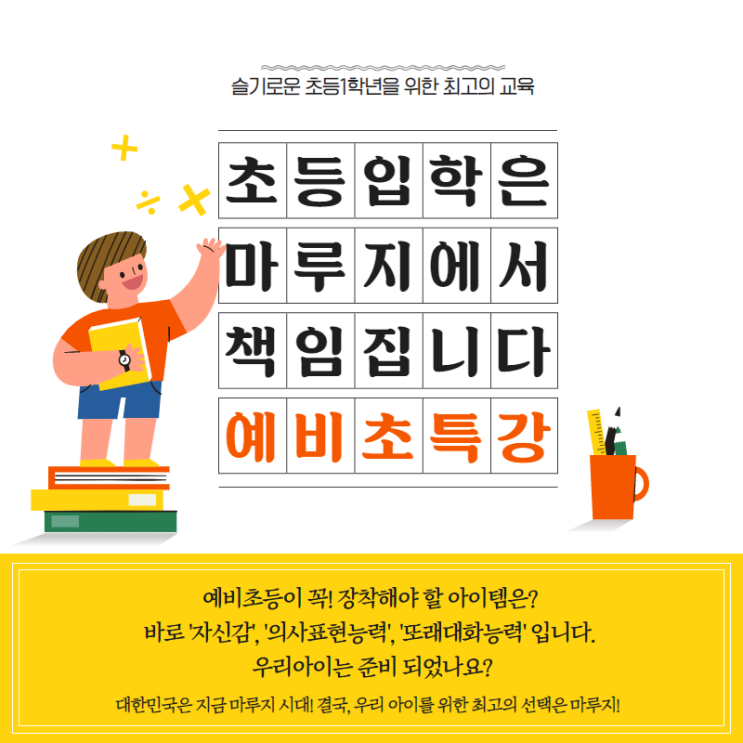 [대전스피치학원] [대전예비초] [대전초등스피치] 입학 후 바로 드러나는 차이! ‘말하는 아이’가 학교생활을 이끕니다 2026 예비초 학부모 설명회에 초대합니다!! ▶1/21(수) 현재 접수중! 안녕하세요! 아이에게 "배우는 즐거움"과 "성장하는 기쁨"을 선물하는 대전스피치학원 마루지입니다 2022 개정 교육과정이 시행되면서, 초등학교 입학 전 아이에게 가장 먼저 준비시켜야 할 능력으로 ‘말하기 능력’이 주목받고 있습니다. 단순히 말을 잘하는 것을 넘어, 자신의 생각을 조리 있게 표현하고, 발표할 때 자신감을 가지는 능력은 초등 학습과 생활 적응의 핵심이 되기 아이들이 학교에서 자신 있게 의견을 말하고....... <img src="https://blogthumb.pstatic.net/MjAyNjAxMTRfMTI5/MDAxNzY4Mzg1NzYxNTYw.t3mBc-pwHg81CTvzjFmHt6EVm5MdYLGuLssgCPhMAHQg.PzyY9XfaB8co4g7OQXELD4vuwyds4QGVmiCISKAQp2kg.PNG/%BF%B9%BA%F1%C3%CA%B5%EE_%C8%AB%BA%B81.png?type=s3" />