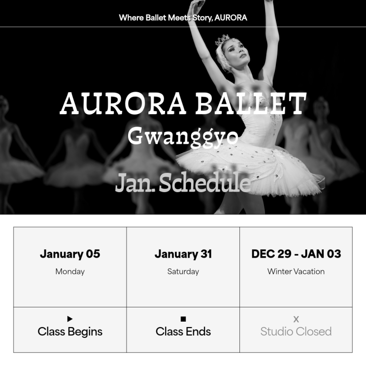 [오로라발레 광교중앙역점] 1월 수업일정 | 발레하러 AURORA | 성인발레 유아발레 초등발레