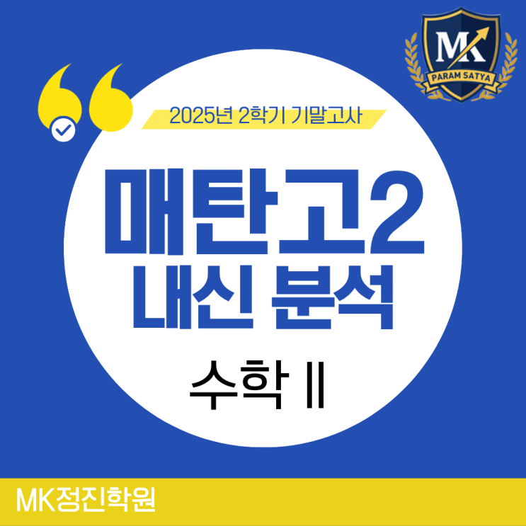 [매탄고 내신 수능 전문 MK정진학원] 매탄고 수학 내신 2학년 2학기 기말고사 시험 분석(2025년)