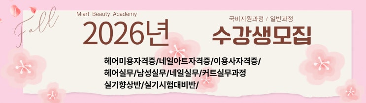 성남/분당 미아트미용학원 개강안내 분당야탑 미아트에서 국비수업 및 일반수업 개강알려드립니다^^ ----------------------------------------------------------------- ✅️네일아트 실무과정 (네일드릴/네일디자인) 2월2일개강 오전9시30분~13시30분 주5일 (월,화,수,목,금) 자부담비:317,030원 ------------------------------------------------------------------ ✅️이용사실기시험 향상과정(정발+아이론펌) 커트/아이론펌/염색 2월3일 개강 저녁 6시20분~9시20분 주2일 (화,목) 자부담비:181,160원 --------------------------------------------------------------------- ✅️[이용사]남성커트과정(기초컷&트렌드컷&바버....... <img src="https://blogthumb.pstatic.net/MjAyNjAyMDZfNDQg/MDAxNzcwMzYyNTYxOTM5.NnDm0WudggFU1_FC8i7zrnG3gFXmmNuw0z8aDVNsFrMg.deivrTnfkveIDne5pQTK5umDvxuqc4K3ynLbydBeJasg.JPEG/001.jpg?type=s3" />