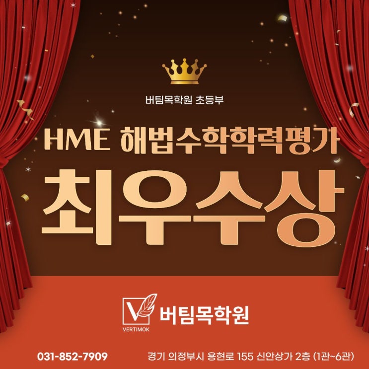 상장 들고 웃으며 들어온 아이들… 버팀목학원이 달라서 생긴 결과 안녕하세요? 경기 북부 입시총괄센터, 의정부 민락동 중등 영어, 수학, 국어, 과학학원 컨퀘스트올/버팀목 학원 티목이 언니예요^^ 오늘은 정말 자랑 안 할 수 없는 소식을 들고 왔어요! 버팀목학원 초등부에서 꾸준히 공부해 온 송산초등학교 5학년 한00 학생이 HME 해법수학학력평가에서 최우수상을 수상했어요! 상 소식 들었을 때 학원 분위기요? 말 안 해도 아시죠? 선생님들도, 아이도, 티목이 언니도 다 같이 웃음꽃이었답니다 이 결과는 단기간에 벼락치기로 만들어진 성과가 아니에요. 초등 수학의 기본 개념을 탄탄하게 다지고, 올바른 공....... <img src="https://blogthumb.pstatic.net/MjAyNjAyMDVfMTgw/MDAxNzcwMjc3NzQ0NzIw.WeEJDmj8dt06lit2_0ax4ToiVe4dSVs5nTT4VT9X53Ug.T99a3hUH--tWDdljJ2Qs-PxKd4T_31gqeXn4QpWRgqYg.JPEG/%B9%F6%C6%C0%B8%F1_%BA%ED%B7%CE%B1%D7_%C0%CE%BD%BA%C5%B8.jpg?type=s3" />