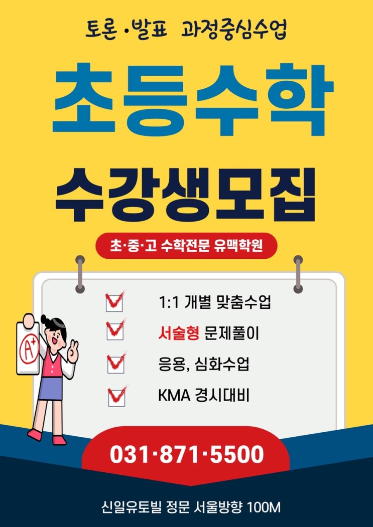 유맥학원 초등수학은 1. 개념 설명을 유난히 강조하고 또 반복 설명 합니다. 2. 문제를 풀면서 모르는 부분이 있으면 겁 먹고 조마조마 하고 당황 해 할때 -천천히 다시 문제를 읽는 연습을 한 후에 질문을 하는 방법을 가르칩니다. 또한 -생각하는 시간을 충분히 갖게 하여 결국에 학생 스스로 풀 수 있는 자신감을 쌓을 수 있는 기회를 반복하여 -모르는 문제는 나만이 아니라 다른 친구들과 다르지 않다는 경험으로 3.수학과 가까워 지는 수업 분위기를 목표로 열심히 지도하는 학원입니다 <img src="https://blogthumb.pstatic.net/MjAyNjAyMDdfMjI0/MDAxNzcwMzkyOTgxNDk3._YlOh0Bm_6auVdB1JFyAkr9upNPaf8nOT8x0OS6oHSEg.BjPs9WKJz7BTZ9B1KdvIMp5_m7yCxCec9PLRmymA6Dkg.JPEG/IMG%A3%DF4552.JPG?type=s3" />