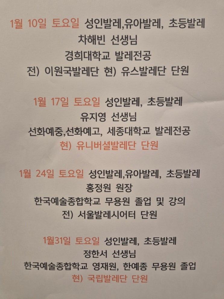 2026년1월 토요일 현역발레단선생님들 수업