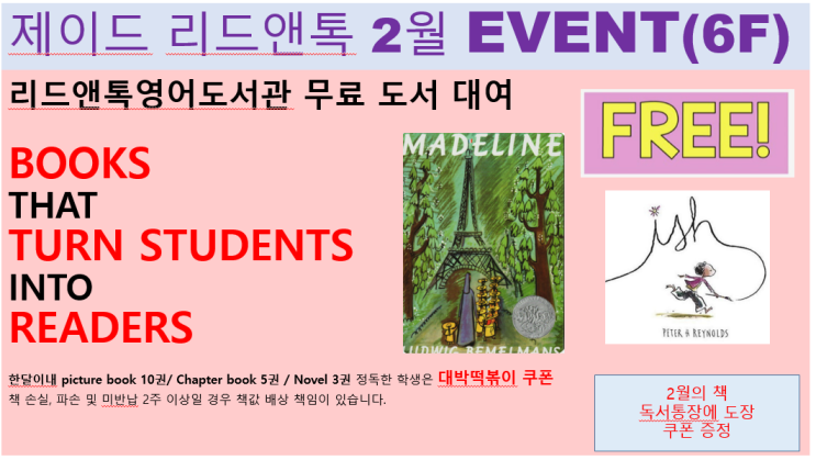 1.MADELINE 『Madeline』은 파리의 한 기숙학교에서 생활하는 열두 명의 소녀들 중 가장 작고 용감한 소녀 **마들렌(Madeline)**을 주인공으로 한 고전 그림책입니다. 아이의 독립심과 용기, 우정을 소재로 하고 있는 책입니다. 2. ISH 『Ish』는 “완벽함(perfect)”이 아닌 “~같은(ish)” 표현을 통해 창의성과 자기표현의 가치를 전하는 그림책입니다. 단순한 선화와 여백 중심의 구성으로, 결과보다 과정과 태도가 중요하다는 메시지를 가지고 있습니다. 우리 학생들이 책을 읽고 주인공의 마음에 공감하고 생각이 한걸음 더 성장하는 계기가 되길 바라는 마음으로 2월 한달도 부지런히 빌려서 읽게 하고 있어요~ 책도 읽고 내용 설명 합격....... <img src="https://blogthumb.pstatic.net/MjAyNjAxMzFfNjIg/MDAxNzY5ODI5ODE4Njgx.yaMXfNw2vSktLeULbzlrsZ5jGn1Zcpu-YUtOfH6hx00g.tMvS3GAOkkL902ymCCWFi4kHGmUPtwJnEtx_-2bZjKMg.PNG/image.png?type=s3" />