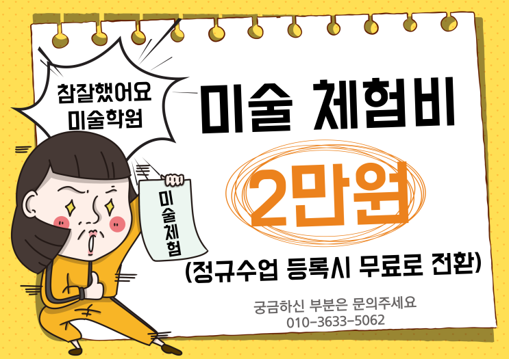 미술 원데이 체험이 공짜? 참잘했어요 미술학원 체험비 "등록시 공짜?"