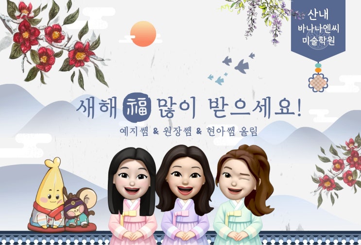 안녕하세요. 산내 바나나엔씨 미술학원입니다 :) 새해가 시작되며 늘 아이들을 믿고 보내주시는 어머님들께 작은 감사의 마음을 전하고 싶었습니다. 그래서 이번 설에는 따뜻한 더치커피 한 병을 준비했어요. 바쁜 하루 속에서 잠시라도 편히 쉬는 시간이 되셨으면 하는 마음이었습니다. 이번 선물에는 선생님들의 얼굴이 담긴 작은 엽서도 함께 넣어드렸습니다. 매일 교실에서 아이들과 마주하는 선생님들이 직접 감사 인사를 적었습니다. “아이를 믿고 맡겨주셔서 감사합니다.” “함께 성장할 수 있어 참 감사한 마음입니다.” 늘 가까이에서 아이들을 지켜보는 사람으로서, 어머님들께 꼭 전하고 싶었던 말이었습니다. 조금 쑥스럽지만, 얼....... <img src="https://blogthumb.pstatic.net/MjAyNjAyMTNfMTE2/MDAxNzcwOTg0NjU2Mjgx.lswcICdMJdlxBdbugiisPpt0piyW3Kz3Lhs81xNvA84g.3s8PBs3iFlLpzcPFKM8Bs7uCDvKDrU4dHeiUMIdgYWUg.JPEG/7.jpg?type=s3" />