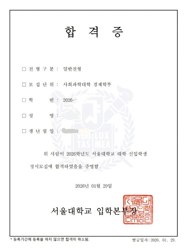26년 운양고 졸업 변O서학생 서울대/연세대/성균관대 정시 합격수기