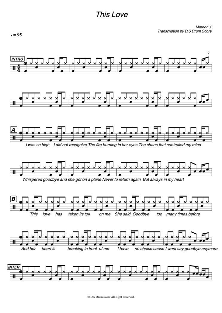 [ONLY 악보] This Love 드럼악보 ( Maroon5 )