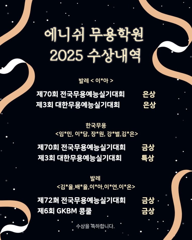 에니쉬 무용학원 2025 수상내역