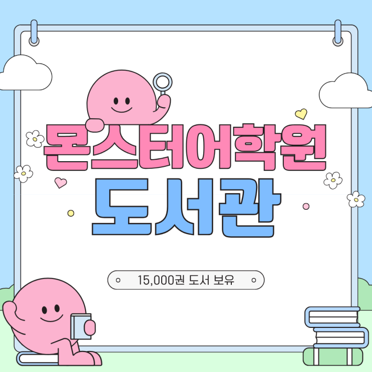 몬스터어학원 영어도서관을 소개합니다! 15,000권의 책 속에서 자라는 영어와 사고력 안녕하세요 광진영어학원 몬스터어학원입니다! 오늘은 몬스터 친구들이 정말 좋아하는 공간, 바로 몬스터어학원 영어도서관을 소개해 드리려고 합니다. 몬스터어학원 광진본원 4층에는 영어도서관이 자리하고 있는데요. 이곳에는 무려 15,000여 권의 영어 원서가 비치되어 있습니다! 아이들이 수업 전후로 자유롭게 책을 읽기도 하고, 마음에 드는 책을 골라 집으로 빌려가기도 하는 공간입니다. 처음 영어를 시작하는 친구들은 이렇게 읽어요 대체로 레벨 1~5 친구들은 도서관에 들어오면 가장 먼저 눈에 띄는 전면 책장에서 책을 고르는....... <img src="https://blogthumb.pstatic.net/MjAyNjA0MDdfMjI2/MDAxNzc1NTQwNDUyNTYy.DhUfNq3Z4l-JBv1W7YIkanmeAaTfB2M-l-Ka1towWqgg.RxAXDRZaYBJ_9ujyMX6i1MbVly7wIU0j2viKTuKzg5Yg.PNG/%C6%C4%B6%F5%BB%F6_%BA%D0%C8%AB%BB%F6_%C0%CF%B7%AF%BD%BA%C6%AE_%B5%B5%BC%AD%B0%FC_%B0%A1%C1%A4%C0%C7_%B4%DE_%C7%E0%BB%E7_%B1%E2%C8%B9%BE%C8_%C7%C1%B7%B9%C1%A8%C5%D7%C0%CC%BC%C7_%281%29.png?type=s3" />