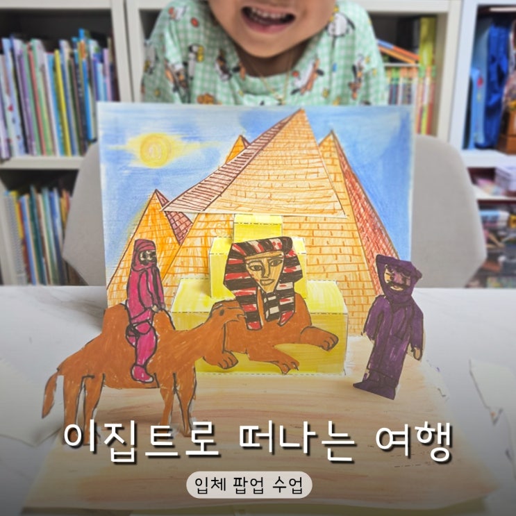 이집트로 떠나는 여행 ✈️ 오늘은 이집트로 여행을 떠나볼까요? 피라미드 앞에 우뚝 선 스핑크스, 낙타를 타고 사막을 가로지르는 사람들, 푸른 하늘 아래 펼쳐진 이집트의 풍경. 평면 위에 그린 그림이 접고, 세우고, 붙이면 입체 작품으로 살아납니다. 배경-중경-전경을 나누어 구성하며 공간을 이해하고 평면을 입체로 만드는 법을 배우는 특별한 수업이었어요. 스핑크스를 그려요 이집트 하면 떠오르는 스핑크스. 연필로 먼저 밑그림을 그립니다. 사자의 몸, 사람의 얼굴을 가진 스핑크스. 큰 얼굴, 위엄 있는 표정을 관찰하며 그려요. 밑그림이 완성되면 사인펜으로 윤곽선을 따라 그리고 색을 채워 넣습니다. 붉은 사막의 색으....... <img src="https://blogthumb.pstatic.net/MjAyNjAzMjlfODUg/MDAxNzc0NzU1Mjc0ODE1.fhWCbbZ_SMx9Ib1PJ8qZ49XhV_OV5z60IQqdUexQXJcg.NfXf-jU0oc7um1OvSEq6D3p7guSxAWmg1rgDjGVpIlwg.JPEG/%C0%D4%C3%BC_%C6%CB%BE%F7_%BC%F6%BE%F7.jpg?type=s3" />