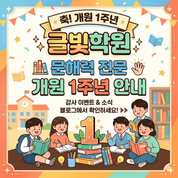 문해력 전문 글빛학원 개원 1주년 기념 & 특별 행사 안내