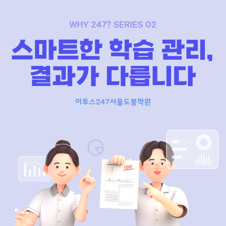 안녕하세요 이투스247서울도봉학원입니다. 학생들과 상담을 하다 보면 정말 많이 듣는 말이 있습니다. “공부는 하고 있는데요… 잘하고 있는 건지는 모르겠어요 ” 시간도 쓰고, 계획도 세우는데 왜 결과로 이어지지 않는 걸까요? 공부는 충분히 하는데, 결과는 불안한 이유 많은 학생들이 비슷한 흐름 속에서 공부하고 있습니다. 계획은 세우지만, 끝까지 이어지지 않음 오늘 무엇을 학습했는지 정리되지 않음 잘하고 있는지 확인할 기준이 없음 이 상태가 반복되면 공부는 계속하는데 불안감만 쌓이게 됩니다 문제는 ‘노력’이 아니라 관리의 기준입니다. 같은 공부를 해도 결과가 달라지는 이유 ?....... <img src="https://blogthumb.pstatic.net/MjAyNjAxMTdfOTgg/MDAxNzY4NjUyMjY1MzA2.rSmk7-lJk_MJofZRNmbrLY_Q_tOfhQBaibu1vUMZ4vIg.Ymnhe2jWiHxD7lNq7h5-TeTV22aWFYw0KNqXKz3sjQIg.PNG/1.png?type=s3" />