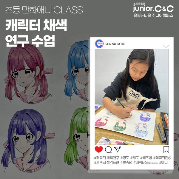 캐릭터 채색 연구 수업현장! 애니 캐릭터를 잘 그리고 싶다면 은평뉴타운주니어씨앤씨 구파발학원