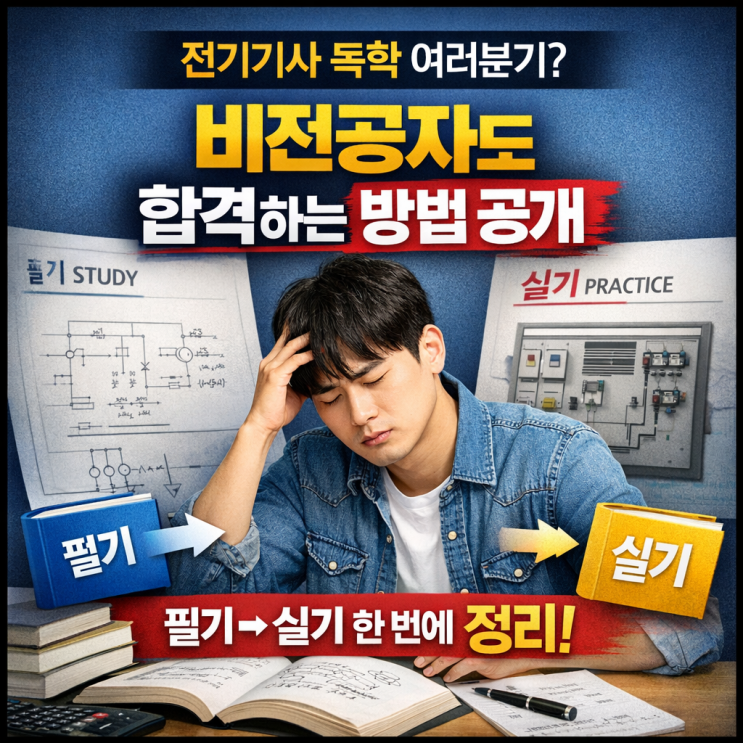 안녕하세요. 에듀윌 전기기사 노량진학원입니다. 전기기사, 어디서부터 시작해야 할까요? 전기기사 준비를 고민하고 계신 분들과 상담을 하다 보면 가장 많이 듣는 질문이 있습니다. “전공자가 아니라서 시작해도 될까요?” “필기부터 실기까지 어떻게 이어가야 하죠?” “지금 시작하면 늦은 건 아닌가요?” 사실 많은 수험생들이 ‘공부량’보다 ‘방향’에서 막힙니다. 무엇을, 언제, 어떻게 해야 하는지 필기와 실기를 어떻게 연결해야 하는지 이 흐름만 잡혀도 합격까지 걸리는 시간은 확실히 달라집니다. 그래서 준비했습니다. ✔ 2026 전기(산업)기사 합격로드맵 설명회 ✔ 처음 시작하는 분들을 위한 전체 합격 설계 ✔....... <img src="https://blogthumb.pstatic.net/MjAyNjA0MDJfMjg2/MDAxNzc1MDk1MjE4MzEy.9vfRni7y9yyCIQAdUUzYgYYze2pbkM2GezsV2Q4Dgogg.Py_HUhE5yEYTxHMG4KQWp488nc4Jys9yb0a2tbcTOFIg.PNG/%C0%FC%B1%E2%B1%E2%BB%E7_%C7%D5%B0%DD%B7%CE%B5%E5%B8%CA%BC%B3%B8%ED%C8%B8.png?type=s3" />