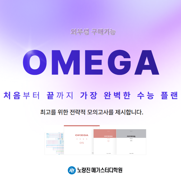 빈틈없는 관리, 틀림없는 결과! 안녕하세요. 노량진 메가스터디학원입니다. 메가스터디학원 학습 콘텐츠! 처음부터 끝까지 가장 완벽한 수능 플랜! 최고를 위한 전략적 모의고사 OMEGA 콘텐츠를 소개합니다. 수능은 결국 '문제를 얼마나 풀었냐'가 아니라 '얼마나 제대로 된 문제를 풀었냐'에서 갈립니다. OMEGA 콘텐츠는 단순한 문제 모음이 아니라 실제 수능의 사고 흐름과 출제 의도를 담아낸 결과물입니다. 다수의 모의고사 적중 "실제 수능과 유사한 문제를 풀고 싶어요" 2026학년도 불수능에서도 OMEGA 모의고사는 다수의 문항을 적중했습니다. 한 문항을 만들기 위해 수차례 검토와 분석을 거쳐 평가원의 기....... <img src="https://blogthumb.pstatic.net/MjAyNjA0MDRfOCAg/MDAxNzc1Mjc0NDcwNjE2.SJexvHJ5ucD0YpHprqjL_m2Y78wxY_-d7E3UhunNf30g.EOfsXHr2Cr34fTl-JoJc2E7LQg2TB3YOwETXgEzwCo8g.PNG/image.png?type=s3" />
