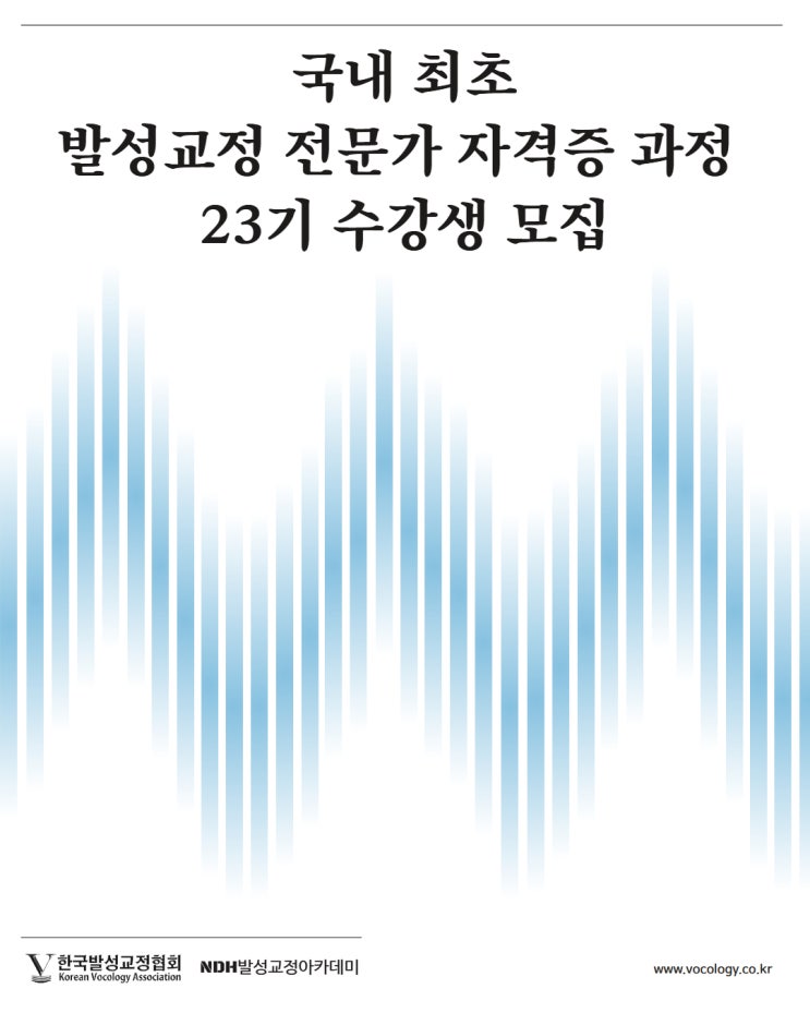 2026년 4월 10일 NDH발성교정 아카데미에서 '2급 발성교정사 자격증 과정'이 개강 될 예정입니다. 발성교정사 2급 과정은 일반인, 음성질환자, 갑상선 수술후 음성훈련, 목소리를 전문적으로 사용하는 음성사용 직업인의 발성훈련 등 목소리에 관련된 여러 분야에 종사할 수 있는 발성전문가를 양성하는 과정이며, 전문가 수준의 발성학에 대한 이론적 지식과 훈련을 통해 발성 훈련 및 능력을 개발하고, 개인 지도 및 발성 교정 업무를 수행할 수 있는 고급 수준 능력을 보유한 신뢰도 있는 인재를 양성하는데 목표를 두고 있습니다. 발성전문가에 관심이 있는 누구나 신청, 수강이 가능하니 많은 관심 바랍니다! - 발성교정사 2급 자....... <img src="https://blogthumb.pstatic.net/MjAyNjAzMjZfMTQ5/MDAxNzc0NTExNzY1NjIx.2u_0pK1I-iaVCSMD9TrSsR3IGnfkV6WPoK-UnrDlOKIg.XVImLBF_9ej706BIVQYZnwag9oovmg5IVMRG3w4nLnog.JPEG/23%B1%E2_%C8%AB%BA%B8_%C6%F7%BD%BA%C5%CD_%C3%D6%C1%BE_1.jpg?type=s3" />
