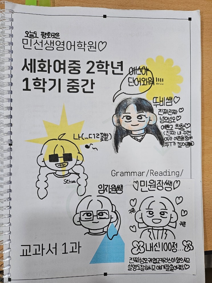 2026년 중고등시험기간이 도래되었습니다. 우리 학생들 의지도 대단하고 열심히 준비하시는 선생님들의 열정도 만만치 않으십니다.다들 최고의 성과 나올 수 있도록 최선을 다하겠습니다. 원장샘이 귀여운데 카리스마가 있다는건 안비밀 저희학원건물 반포쇼핑타운3동 지하에 있는 샤론화원인데 제 단골집입니다. 사장님께서 알아서 취향껏 그날그날 수급되는 재료로 예쁘게 만들어주시는데 한번 이용해보세요. 만원의 행복 학생들 함께 있을때는 통화를 하지 않습니다. 모든 문의는 문자로 먼저 내용 남겨주셔야 통화가 가능합니다. 010 4010 5819 #세화여중영어내신#신반포중영어내신#경원중영어내신#원촌중영어내신#한....... <img src="https://blogthumb.pstatic.net/MjAyNjAzMjdfMTI3/MDAxNzc0NjAxNDM1ODIy.b1d-7xnGJwpvxbKwOdvblYwe8LiLJuK5syl41eN33tQg.44CcEDKexPbQ-Yqr0rB7Fqqc7moasnQQTk91_qesuowg.JPEG/900%A3%DF20260327%A3%DF172557.jpg?type=s3" />