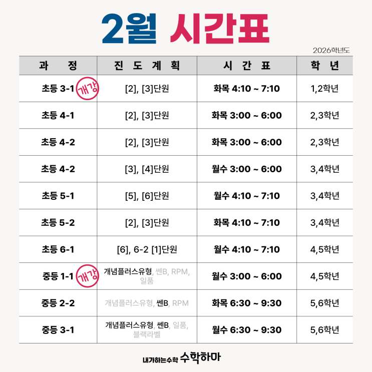 2월 시간표 및 수업 일정