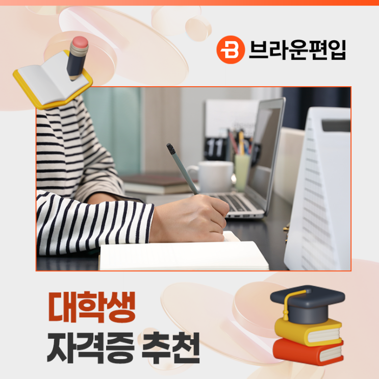 대학생 시기에 자격증을 준비하는 것은 단순히 스펙을 하나 더 쌓는 개념과는 다릅니다. 최근 채용 시장에서는 자격증의 개수보다 어떤 자격증을 언제, 어떤 목적을 가지고 준비했는지가 더 중요하게 평가되는 흐름으로 바뀌고 있습니다. 특히 대학 재학 중 취득한 자격증은 전공 탐색, 진로 설정, 실무 이해도 측면에서 긍정적인 신호로 작용합니다. 졸업 직전에 급하게 준비한 자격증보다, 학업과 병행하며 차근차근 준비한 이력이 더 설득력을 갖는 이유입니다. 대학생 자격증, 많이보다 ‘맞게’ 선택해야 하는 이유 과거에는 자격증을 많이 보유한 것이 경쟁력으로 작용하던 시기가 있었습니다. 하지만 최근 채용 트렌드는 명확하게 달라졌....... <img src="https://blogthumb.pstatic.net/MjAyNjAyMDZfMTI1/MDAxNzcwMzM2NDQzNDY2.dbV8033tNu3UuE1UOMXhpSWG9S0hxj9jvCu5moob3R0g.BNg9h3OOaB_7_N1sogzlZhUNpd3a2JQvOUef25AloSQg.PNG/%BD%E6%B3%D7%C0%CF_%BA%EA%B6%F3%BF%EE%C6%ED%C0%D4.png?type=s3" />