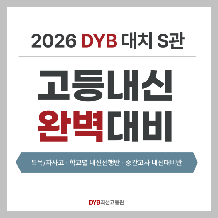 ✨2026년 최선어학원 대치 S관 고1 내신 개강!✨ 왜 최선어학원 대치본원 고등부일까? 1. 탄탄한 커리큘럼 [1-2월 방학기간] ✔️고등실전을 위한 수능 집중 수업 + ✔️고등내신을 위한 어법+서술형 학습 +정기 모의고사 실시 [3월~] ✔️철저한 학교별 맞춤 수업 진행 2. 차별화된 수업 ✔️빅데이터를 통한 학교별/학생별 맞춤 문제 제공 ✔️시험 범위 전 지문 손필기 분석본 자료 제공(내신) ✔️고득점 시그니처 문제를 위한 맞춤 문제 제작 3. 철저한 관리 ✔️담임 선생님의 밀착 관리 ✔️수업 시간 외 학생별 1:1 개별 관리 흔들림 없는 상위 1% 지름길 문의 최선어학원 대치 S관 02-555-7094 <img src="https://blogthumb.pstatic.net/MjAyNjAyMDZfODgg/MDAxNzcwMzQ4MTc3MTU4.ymG3u6SNQO2EARWVbj12PfGlOSdUPJfjLtT-NKZKfewg.oIJCwwX020d-k3Cbneino9nA8agLaCeGcw4VkYW4W98g.PNG/%B4%EB%C1%F6_1.png?type=s3" />