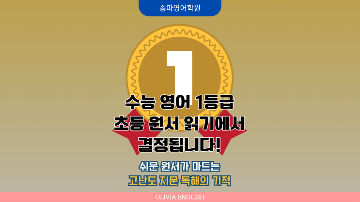 쉬운 원서 읽기가 어떻게 수능 1등급을 만드나요? 안녕하세요, 송파영어학원 올리비아 잉글리쉬 원장 김은경입니다. "수능은 지문이 그렇게 어렵다는데, 아이들이 학원에서 읽는 쉬운 원서들이 정말 도움이 될까요?" 상담을 하다 보면 부모님들께서 가끔 던지시는 질문입니다. 결론부터 말씀드리면, 수능 고득점은 고등학교 시기의 공부가 결정하는 것이 아니라 초중등 시기 쉬운 단어를 얼마나 깊이 있게 다졌는데, 또 문맥을 보고 유추할 수 있는 능력이 있는지에 달려 있습니다. 오늘은 실제 수능 지문 사례를 통해, 왜 어릴 때부터 읽어온 원서가 입시에 큰 도움이 되는지 그 이유를 알려드릴게요. 'Appreciate'가 '....... <img src="https://blogthumb.pstatic.net/MjAyNjAzMjNfMTA5/MDAxNzc0MjE5NTA2Mjcy.1Olyp5TJ61Exqg6gIvPrpdUmctooPT2NL-OCykYF0P4g.gZE2m5b7uLR3BeICEqbGiNediCFnrxM0fmPAtYx3xG8g.PNG/1.png?type=s3" />