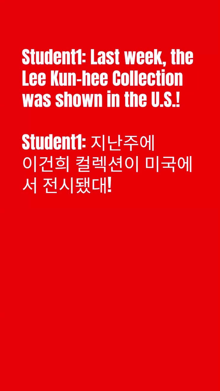 포스트잉글리쉬는 AI영자신문 영어회화를 통해 글로벌 뉴스 주제를 접하고, 자유롭게 질문하며 사고력과 표현력을 기릅니다. 이번주는 이건희컬렉션 미국 전시 관련 시사영어 회화자료입니다. 아래 동영상에서 회화자료와 원어민 발음 영상을 참고해주세요. Student1: Last week, the Lee Kun-hee Collection was shown in the U.S.! Student2: It was started by the late Samsung Chairman Lee Kun-hee to protect Korea’s treasures. Student1: That’s why Samsung gave Korean treasures to museums in Korea. Student2: It shows that companies can help the country in amazing ways. <img src="https://phinf.pstatic.net/image.nmv/blog_2026_02_01_3817/tWaPsO24Wm_01.jpg?type=f480x480" />