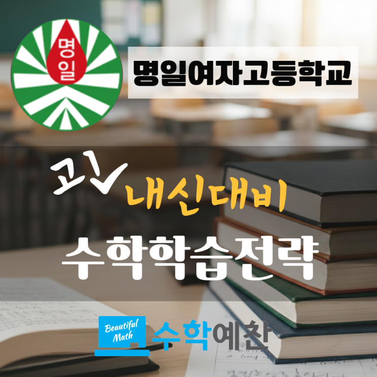 안녕하세요! 수학예찬입니다. "중학교 수학은 어렵지 않았는데 고등학교 수학은 너무 어려워요." 매년 명일여고 신입생들이 하는 말입니다. 한 달 뒤면 고등학생이 되는 우리 아이들의 가장 큰 고민이 바로 1학기 중간고사일 겁니다. 단순한 고등학교에서의 첫 시험이 아닌, 3년간의 대입 과정의 시작을 알리는 중요한 시험이기 때문입니다. 명일여고의 수학은 주변 학교에 비해 전반적인 난이도는 무난한 편입니다. 하지만 방심할 수 없는 것이, 출제 범위가 독특하고 계산력을 요구하거나 변별력을 갖춘 모의고사 기출 변형 문제가 출제되기 때문입니다. 명일여고의 수학은 '쉬워 보이지만 방심하면 안 되는' 시험입니다. ....... <img src="https://blogthumb.pstatic.net/MjAyNjAyMDlfMTIg/MDAxNzcwNjM2OTg5Njcx.kzGqWpmlNX3vIc5FQDpdlovvOymCsLM5mscAUz4Ifxgg.ybBDmb1TINpmuMJKvZzaduELO_dIl-bdjAtHzD_qU1og.PNG/%B0%ED%B5%EE%BC%F6%C7%D0%B3%BB%BD%C5_%284%29.png?type=s3" />