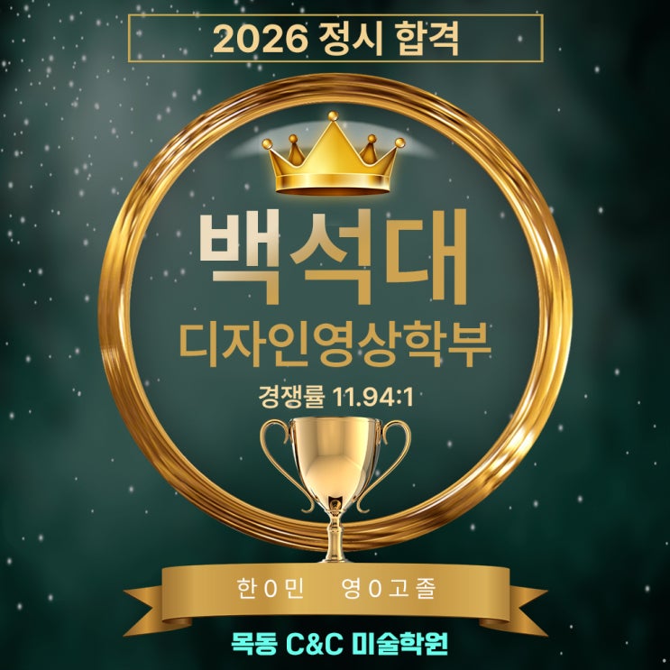 2026 백석대학교 디자인영상학부 정시 합격을 축하합니다~!! 미대 합격의 길은 멀지 않습니다. 올바른 입시 미술의 방향으로 지도합니다. 편안한 환경에서 아이들을 가르칩니다 결과로 증명합니다 "정답은 목동 씨앤씨 미술학원에 있습니다" 상담전화 0507-1333-8882 인스타그램 DM 상담 <img src="https://blogthumb.pstatic.net/MjAyNjAyMTBfMTcy/MDAxNzcwNzEzOTM1MzYx.OXQRB-G9LT8Da8tUZQZqUlPDGiU7sU_6bcZYd55WY4Mg.TESRHzTOZ_26sE33tQ_6Y9AQr4h5YJh4ttsKCFfg9esg.JPEG/%C7%D1%B1%D4%B9%CE_%B9%E9%BC%AE%B4%EB.jpg?type=s3" />