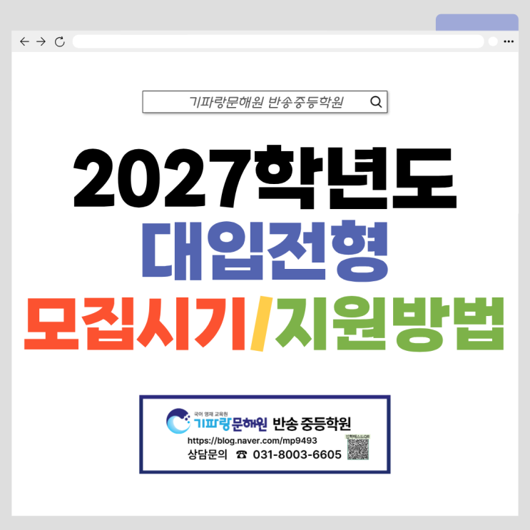[기파랑문해원 반송중등학원] 2027학년도 대입전형 모집시기/지원방법