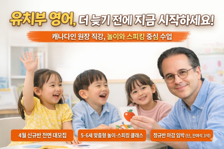4월 유치부 영어 모집|정규반 잔여석 3자리 + 신규반 오픈