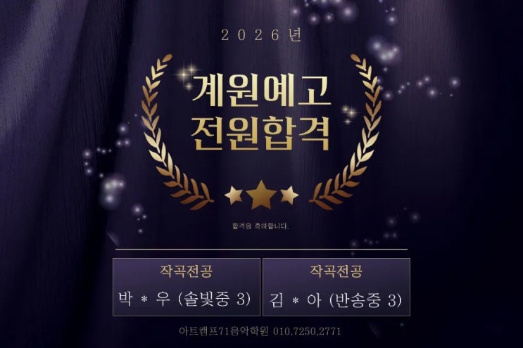 [동탄작곡학원] 화성시의회의장상·계원예고 합격부터 서울대·한예종까지, 동탄 아트캠프71의 검증된 입시 로드맵