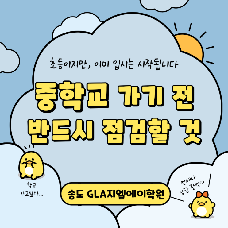 입시까지 이어지는 학습 흐름, 초등 시기에 준비하지 않으면 늦어지는 이유 “아직 초등인데, 너무 앞서 걱정하는 건 아닐까요?” “중학교 가서 그때부터 고쳐나가도 되지 않을까요?” 초등 고학년 학부모님과 상담을 하다 보면 이런 말씀을 자주 듣습니다. 하지만 실제로 중등·고등까지 아이들을 지켜보면, 중학교에서 성적이 안정적으로 유지되는 아이들은 상당수의 경우, 초등 시기에 이미 학습 방식의 기초가 준비되어 있습니다. 중등 전환기는 단순히 학년이 바뀌는 시점이 아니라 학습 방식 자체가 바뀌는 시기이기 때문입니다. 오늘은 입시까지 연결되는 관점에서 초등 시기에 반드시 준비해야 할 중등 전환기 학습 포인트를 정리해....... <img src="https://blogthumb.pstatic.net/MjAyNjAyMDZfNzUg/MDAxNzcwMzU3MTk3MDQx.Rihj-O0A73oBuDms8qYESewLVS-AhSmIzNMAr1MGuhkg.a22Km6dmrB0rYbio3LCh2RRikxWEqas3FI4cteGfnqUg.PNG/%C1%DF%C7%D0%B1%B3_%B0%A1%B1%E2%C0%FC.png?type=s3" />