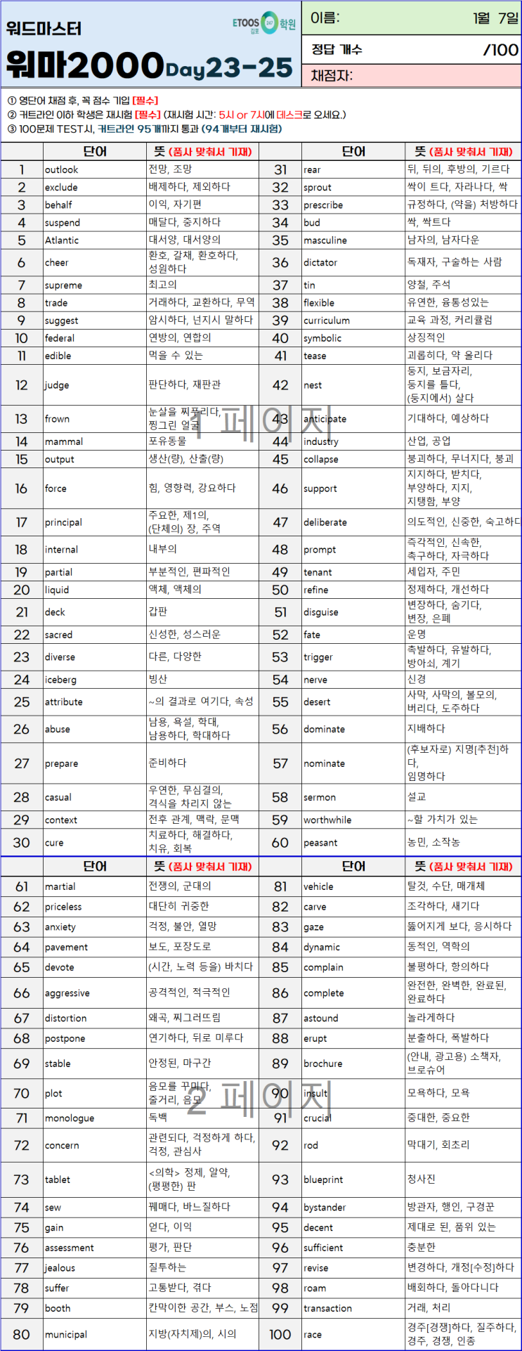 [일일 영단어 테스트] 2026.03.06
