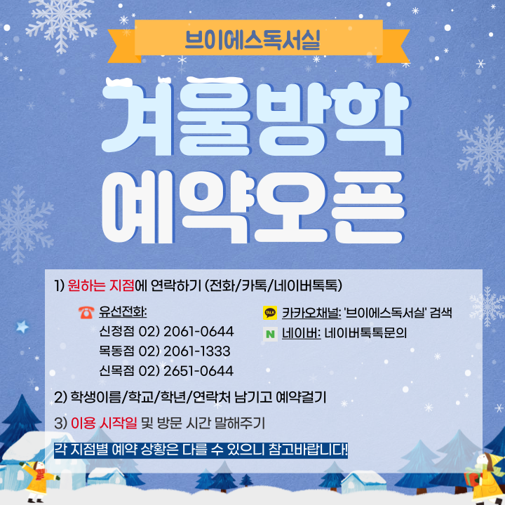 □목동관리형독서실 브이에스독서실□ 2025년 겨울방학 예약 OPEN! & 안내사항