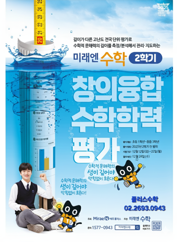 2025년 2학기 미래엔수학 창의융합 수학학력평가 안내 전국 단위로 아이의 ‘수학 실력’을 확인할 수 있는 기회! 1. 왜 지금 수학학력평가가 중요 한가 “우리 아이 수학 실력이 어느 정도인지 잘 모르겠어요…” 많은 학부모님들이 하시는 고민이죠. 수학은 ‘누적의 과목’입니다. 한 번의 개념 결손이 쌓이면 그 영향은 다음 학기로 이어집니다. 특히 초등 고학년과 중학교 진학 시기엔 현재 실력 진단이 필수예요. 지금 시점에 학력평가를 통해 아이의 개념 이해도·문제 해결력·서술 능력을 정확히 파악해야 다음 학기 학습 방향을 세울 수 있습니다. 2. 미래엔수학 창의융합 수학학력평가란? 미래엔수학의 창의융합 수학학....... <img src="https://blogthumb.pstatic.net/MjAyNTExMjdfMjI0/MDAxNzY0MjAwNTE1NDQw.ihpiSoma3KYmOtYvfkEJ4QhpqVHtznLkbaIGAinCa9Qg.o5m255qLHIyv758r1JXR6oZxLV8e4dV2qTg7-X0sL_Ig.PNG/1764195927917.png?type=s3" />