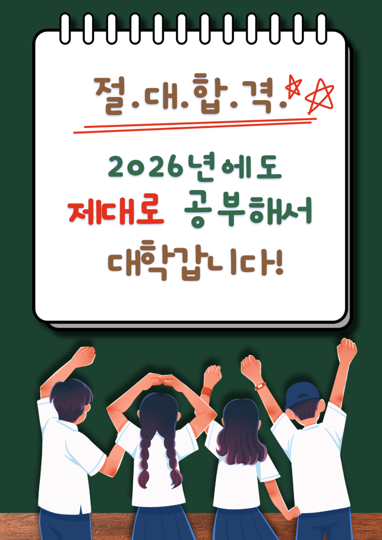 2027학년도 대입이 시작됩니다. 올해는 어느 해보다 치열한 대입이 예상됩니다. 혹자는 ‘고3때는 성적이 안 오른다’라고 벌써부터 지는 싸움을 합니다. 공부는 정직합니다. 공부하면 성적이 오릅니다!!! 잘못된 방법과 불성실한 태도로 성적이 안 오르는 겁니다. 진스터디 학원은 절대 지는 싸움은 하지 않습니다. 확실한 배움과 철저한 관리로 절.대.합.격.이라는 또 한 번의 기적을 만들겠습니다!!! <img src="https://blogthumb.pstatic.net/MjAyNTEyMDZfMjI3/MDAxNzY0OTY3OTA0NTI2.vuJDBInYLAxD5ptwDLypUHCJEEXIEakAgs_Y1sf32HQg.lw6PDXJSTSFa6S4Ib-0F7aJeojqikYQAEhKRUcQlHIMg.PNG/%C0%FD.%B4%EB.%C7%D5.%B0%DD..png?type=s3" />