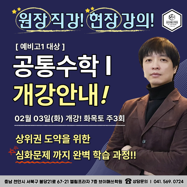 2월 3일 원장 직강 공통수학1 개강 안내 [불당동 브이매쓰 수학학원]