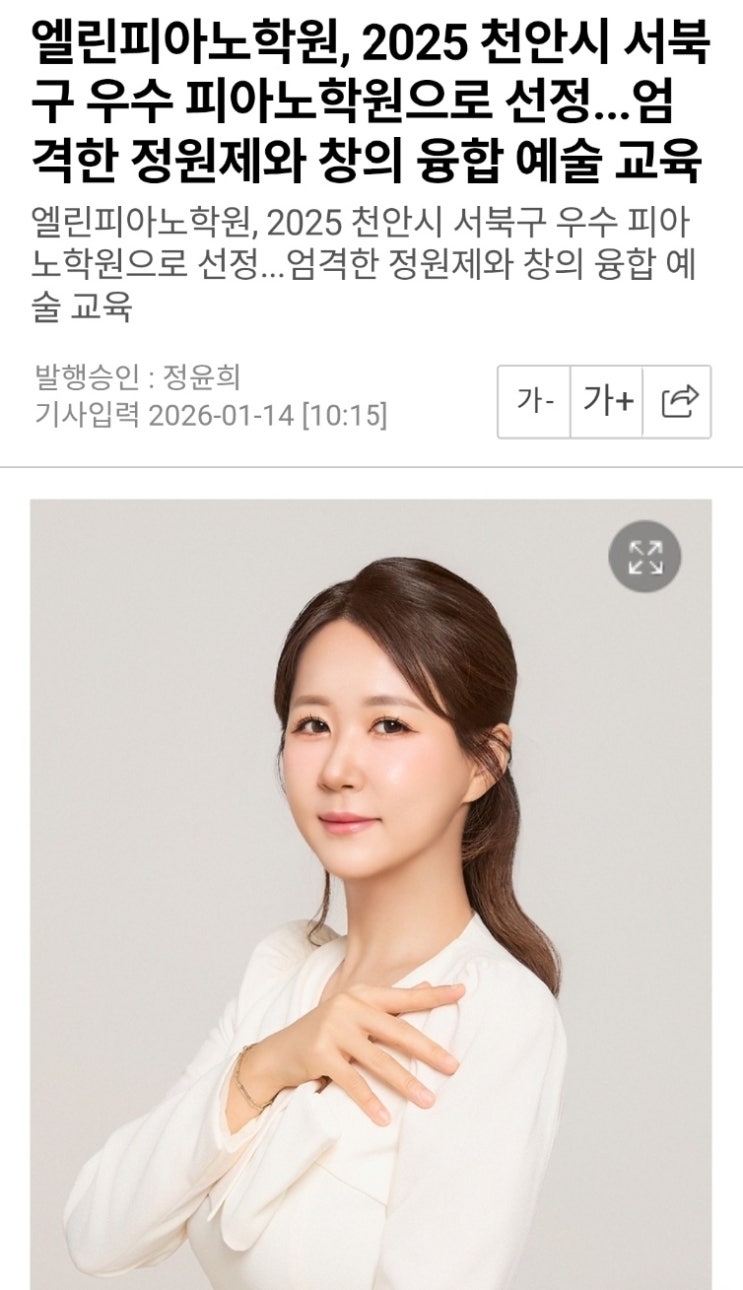 2025 천안시 서북구 우수 피아노학원 선정 | 성성동 엘린 피아노 학원