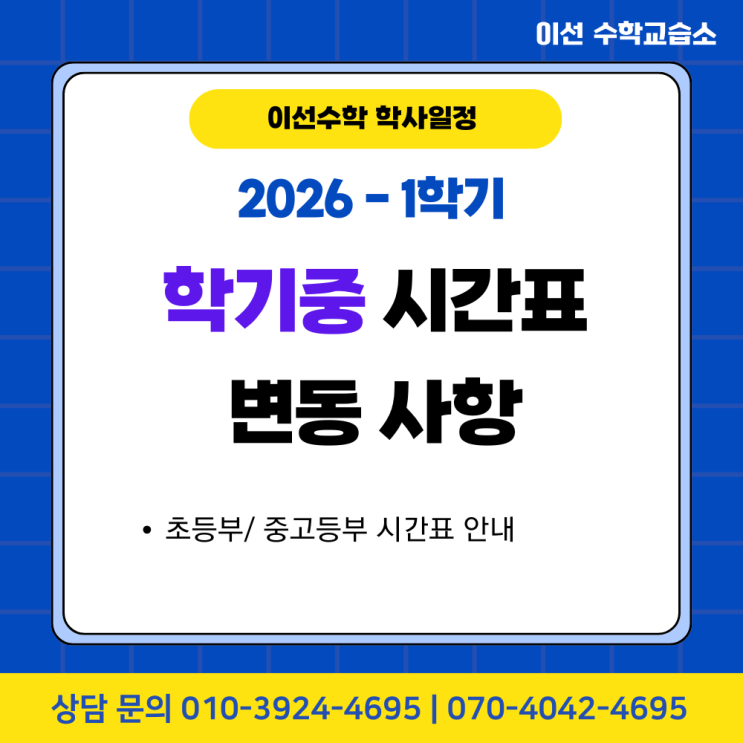 [이선수학 학사일정] 2026학년도 1학기 수업 시간표 변동 안내