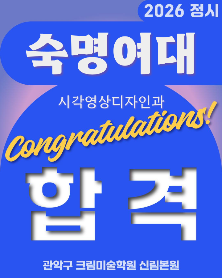 [정시합격] 2026학년도 숙명여자대학교 합격 • 숙명여대 합격 • 숙대 시각영상디자인과 기초디자인 _ 관악구 크림미술학원 신림본원