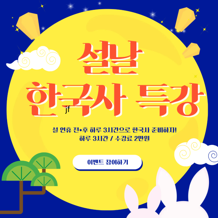 안녕하세요! 오소리프라임학원입니다. 올해 설날 연휴는 2월 14일부터 2월 18일까지, 총 5일입니다. 그리고 이 긴 연휴가 지나면 어느새 3월, 새 학기가 바로 눈앞인데요. 그래서 개학 전, 짧고 굵게 한국사를 정리하는 설날 특강을 준비했습니다. 이번 특강은 2월 14일부터 2월 18일까지 총 5일 동안 각각 하루 3시간씩 진행됩니다. 조선 후기부터 일제강점기, 근현대사까지 한국사에서 중요한 부분을 집중적으로 배웁니다. 이번 설 연휴 동안 학생들의 공부가 끊기지 않도록 구성했습니다. 설날 한국사 특강 수강료는 2만 원입니다. 모두 따뜻하고 즐거운 설 연휴 보내세요~ 새해 복 많이 받으세요! 한 번의 상담, 수업만으로도 차이를 느끼실....... <img src="https://blogthumb.pstatic.net/MjAyNjAxMjlfMTEy/MDAxNzY5NjY0MDExMTc1.m4O78Wv-3-Wqk9EwKpb3R_n_Czx3SsTTT4LLQeNQV3Yg._oRV0ZZ3Mvbh6ZvDFwZ_Kz7A_CKrY_OzFKzOZ67Sd_Qg.PNG/%C1%A6%B8%F1%C0%BB_%C0%D4%B7%C2%C7%D8%C1%D6%BC%BC%BF%E4._%286%29.png?type=s3" />