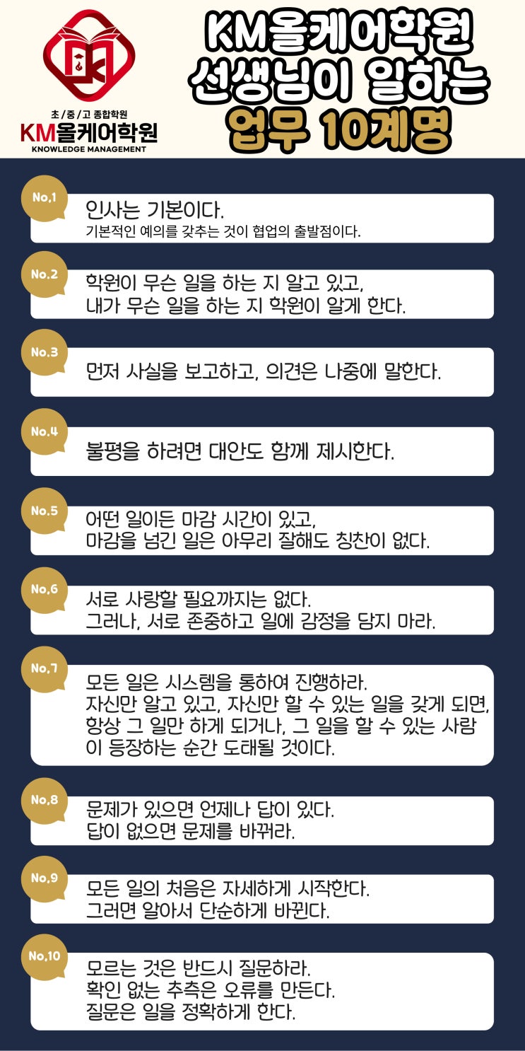 [KM 올케어학원 & 감성수학 신림센터] 선생님이 일하는 업무 10계명 소개