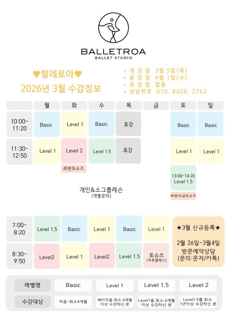 3월 신규등록은 '2월 26(목)부터 3월 4일(수)'까지 방문예약상담으로 진행됩니다. 아래 학원번호로 '문자/카톡' 남겨주시면 확인 후 답변드리겠습니다. 010 - 8458 - 2762 감사합니다. <img src="https://blogthumb.pstatic.net/MjAyNjAyMThfMjAg/MDAxNzcxMzgxODY5MzY3.luUFLvX0Ca051vs3bwY7xgltKrIEVyY1OiIiP-XAOn4g.QoiwRWLqJ_-y0ERaHbyqhb6T25UiKYaGabQ2pLpEJO0g.JPEG/3%BF%F9%BD%C3%B0%A3%C7%A5.jpeg?type=s3" />
