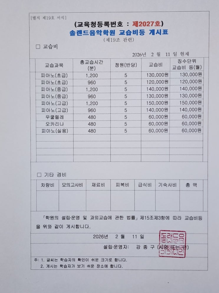 솔랜드음악학원 수강생 모집 안내 "나를 위한 작은 사치, 피아노를 시작하세요" - 대상: 성인 기초·취미반 모집 (주 1회 / 월 6만 원) - 강점: 30년 경력 원장님의 1:1 밀착 지도 - 전문 분야: 찬송가·CCM 반주 / 뉴에이지 / OST / 추억의 명곡 전문 - [위치] 구미명지교회 건물 2층 (솔랜드음악학원) - 상담문의: 054-451-0690 <img src="https://blogthumb.pstatic.net/MjAyNjAyMThfMjU1/MDAxNzcxMzc5NjkyMTkw.Pw5iE96VXmJkENX30P0Qrtz2pbCdTpRnwucV33asUjgg.x-axWNFEcFquJs8gS6GPdP6bpYV-0sH9ULSMWdN2boIg.JPEG/900%A3%DF20260210%A3%DF164402.jpg?type=s3" />